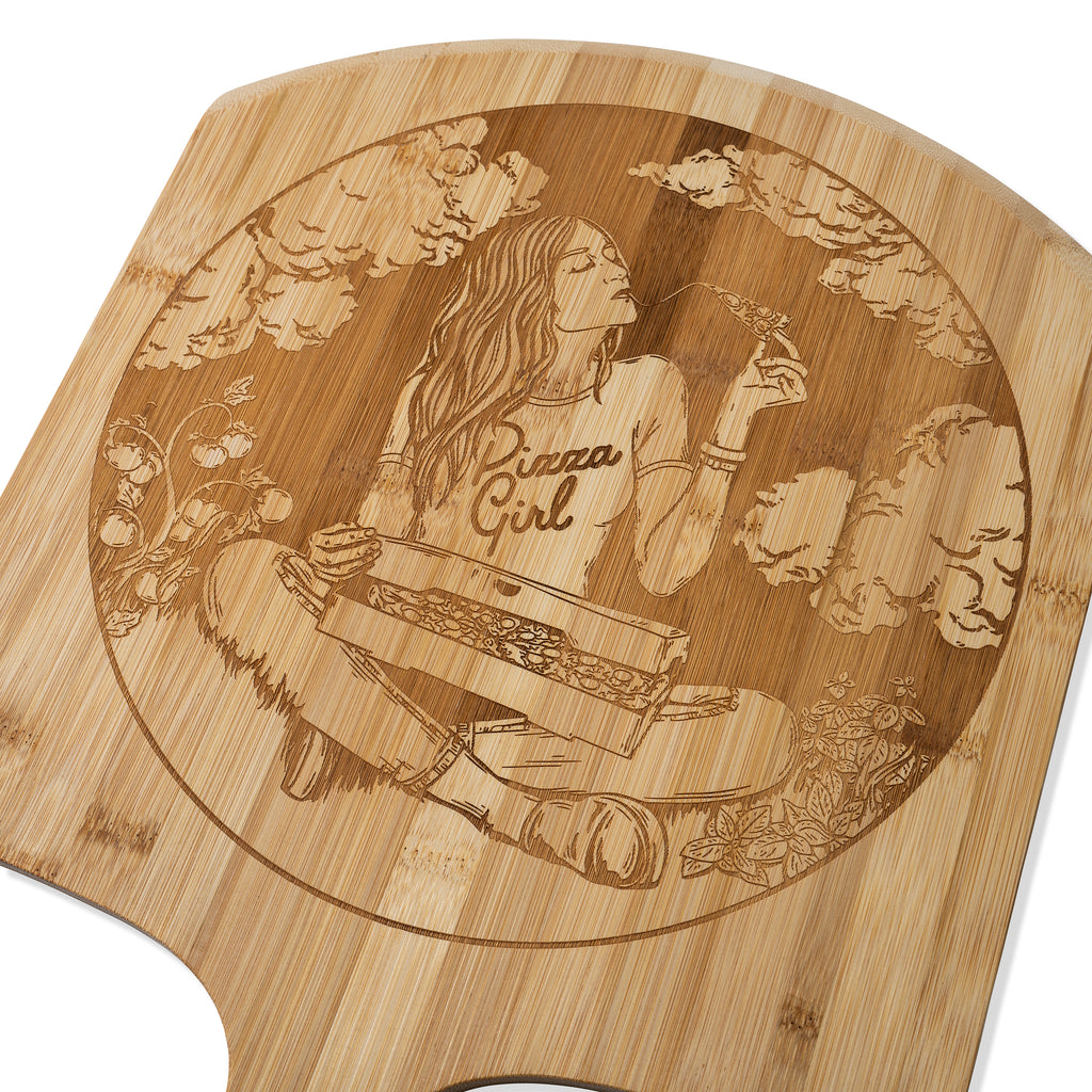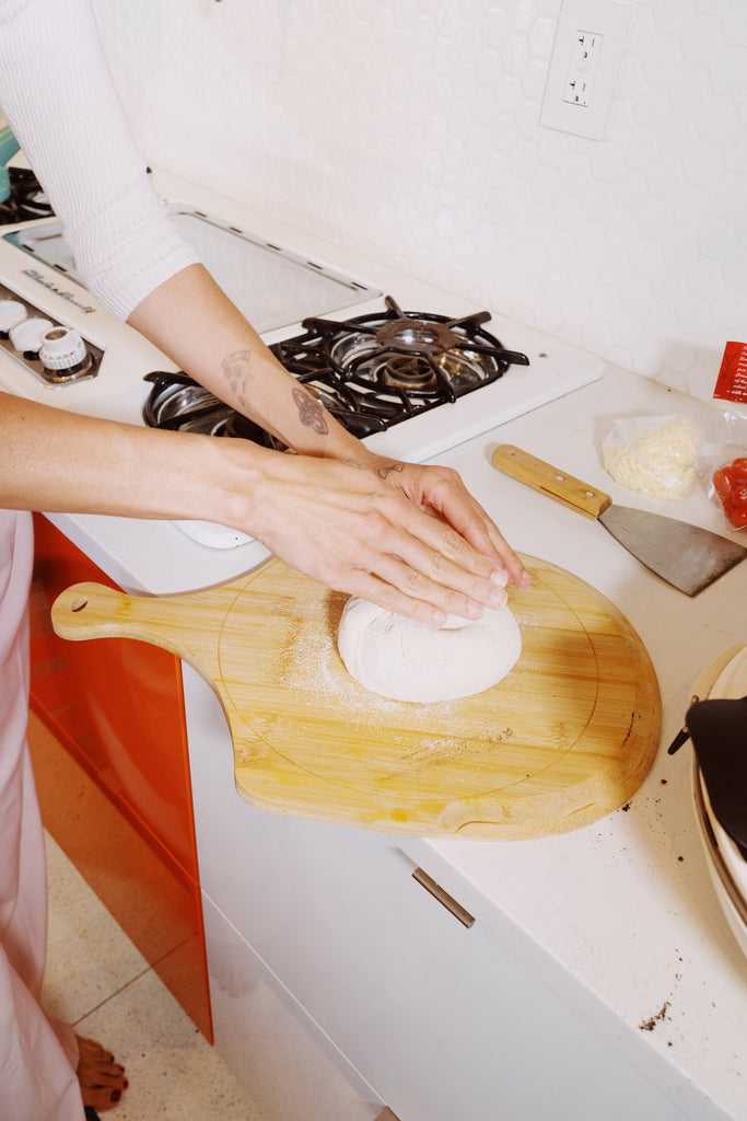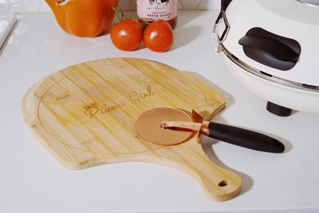 The circular guide on the paddle ensures the ideal size of dough for your Pizza Girl Pizza Grill.